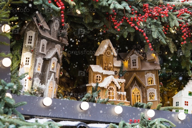 Новый год 2025. Новогодние украшения и игрушки на улицах города. Рождественские праздники, зимний новогодний декор в центре Москвы