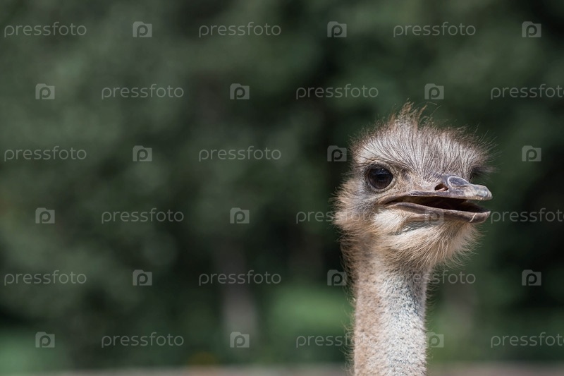 Домашняя птица. Портрет страуса в загоне. Концепция животноводства и сельской жизни. Крупный план. Питомец на экоферме. Сельскохозяйственная промышленность