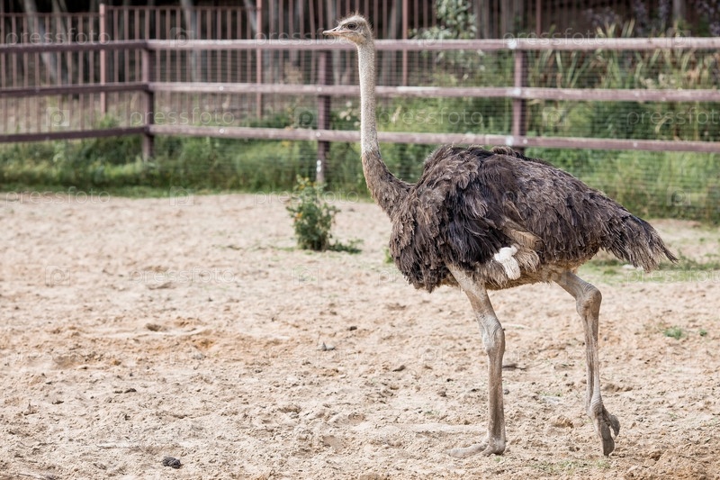 Домашняя птица. Портрет страуса в загоне. Концепция животноводства и сельской жизни. Крупный план. Питомец на экоферме. Сельскохозяйственная промышленность