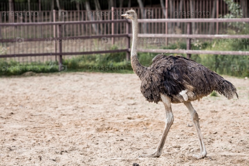 Домашняя птица. Портрет страуса в загоне. Концепция животноводства и сельской жизни. Крупный план. Питомец на экоферме. Сельскохозяйственная промышленность
