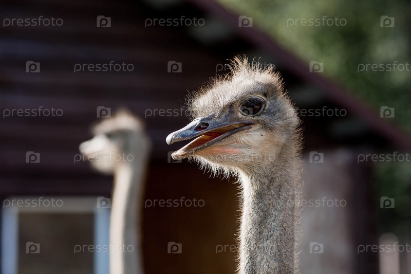 Домашняя птица. Портрет страуса в загоне. Концепция животноводства и сельской жизни. Крупный план. Питомец на экоферме. Сельскохозяйственная промышленность