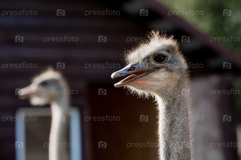 Домашняя птица. Портрет страуса в загоне. Концепция животноводства и сельской жизни. Крупный план. Питомец на экоферме. Сельскохозяйственная промышленность