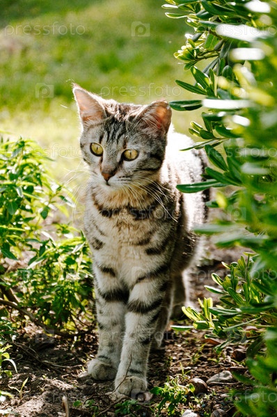 Любопытный кот в кустах