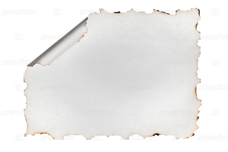 Свернутый в рулон листок бумаги с обгоревшими краями. Изолированный