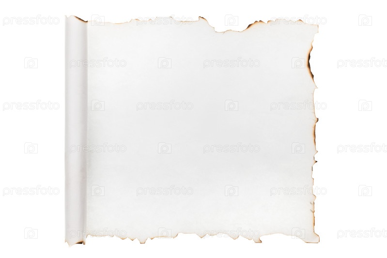 Свернутый в рулон листок бумаги с обгоревшими краями. Изолированный