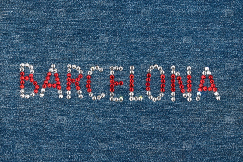 Надпись 'Барселона', инкрустированная линиями на джинсовой ткани