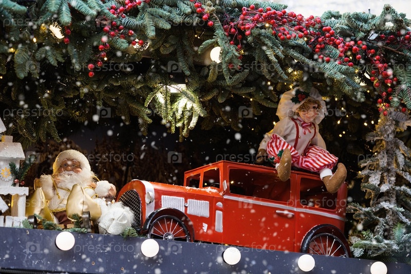 Новый год 2025. Новогодние украшения и игрушки на улицах города. Рождественские праздники, зимний новогодний декор в центре Москвы