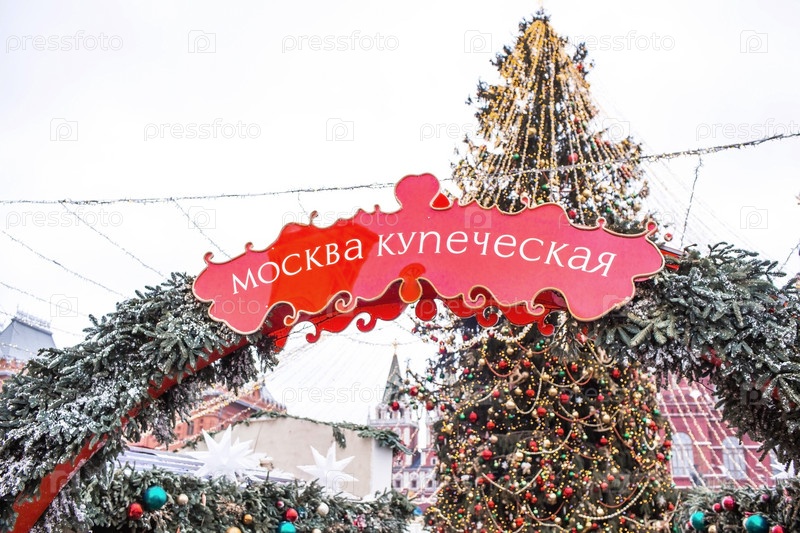 Новый год 2025. Новогодние украшения и игрушки на улицах города. Рождественские праздники, зимний новогодний декор в центре Москвы