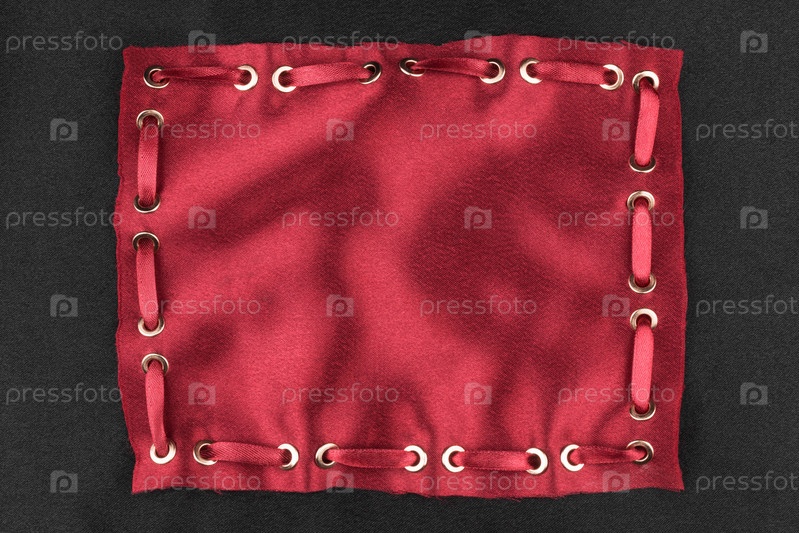 Рамка из красного шелка со вставленной красной атласной лентой на черном шелковом фоне