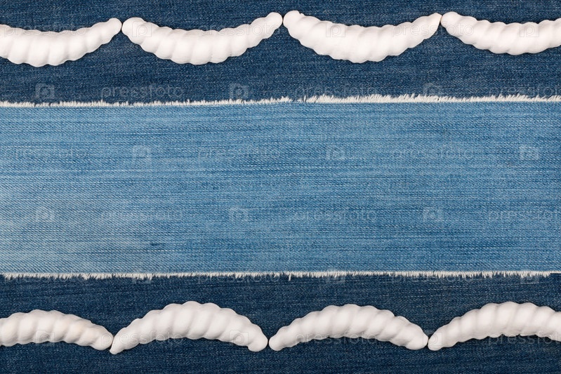 Роскошная элегантная рама из белой лепнины, лежащей на джинсовой ткани