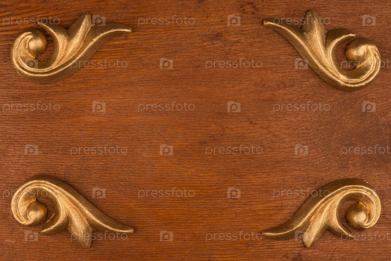 Роскошная рама из золотистой лепнины, лежащей на темном дереве