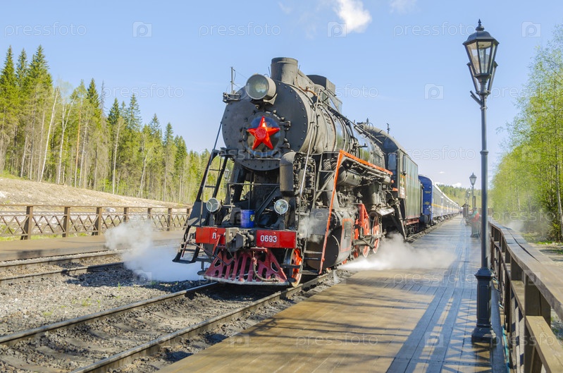 Ретро-поезд «Рускеальский экспресс» на платформе