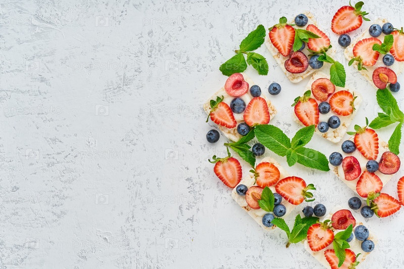 Рамка из хрустящего хлеба Rise с красочной концепцией ягод и фруктов на пастельном фоне