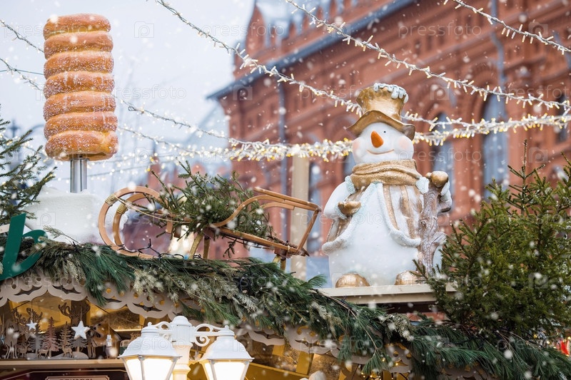 Новый год 2025. Новогодние украшения и игрушки на улицах города. Рождественские праздники, зимний новогодний декор в центре Москвы
