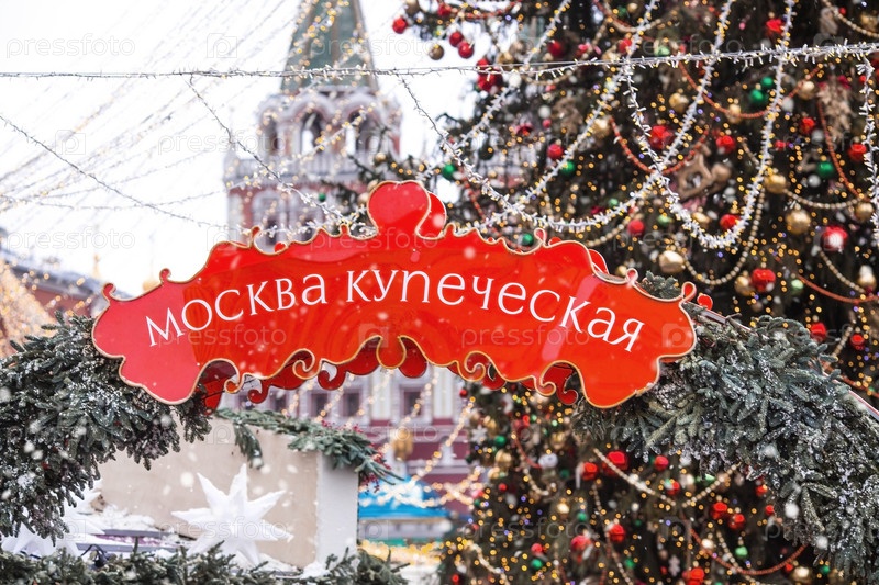 Новый год 2025. Новогодние украшения и игрушки на улицах города. Рождественские праздники, зимний новогодний декор в центре Москвы