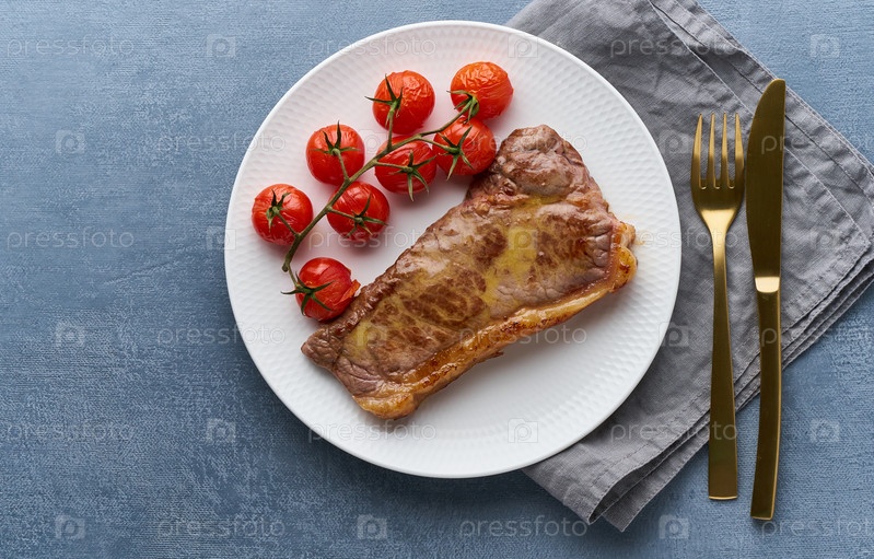 Кето-кетогенная диета стейк с томатами на темном фоне, вид сверху копировальное пространство