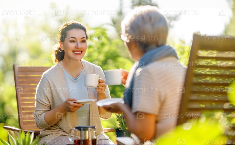 Женщины пьют чай в саду