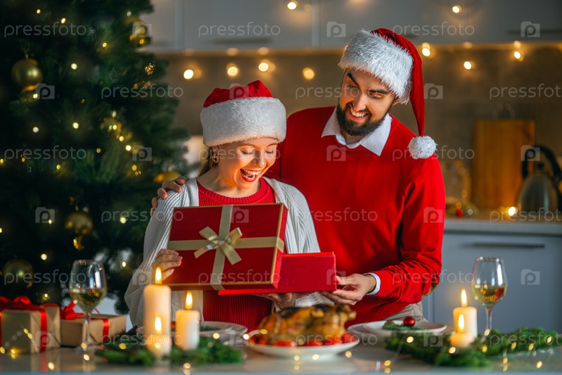 Пара ужинает на Рождество