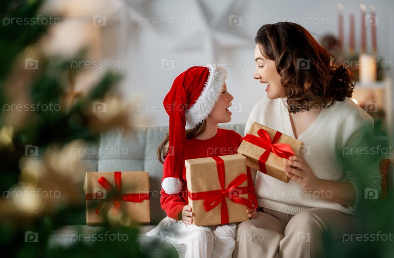 Семья празднует Рождество