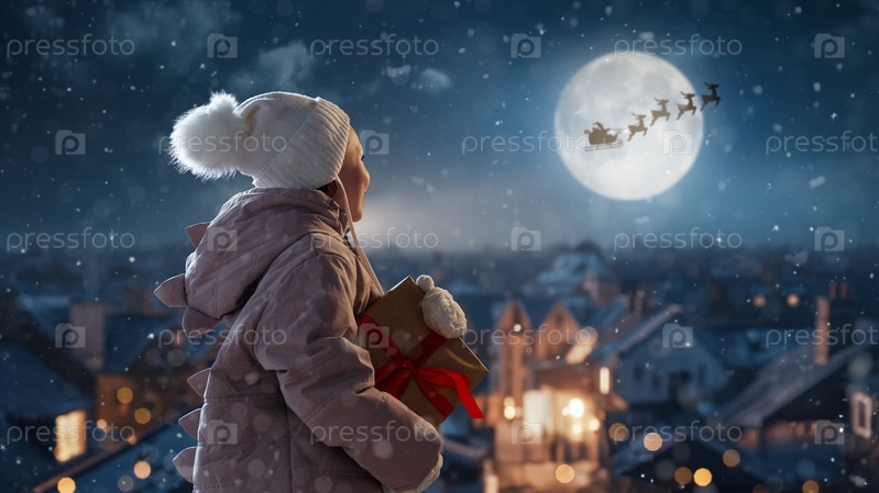 Девочка с подарком на Рождество