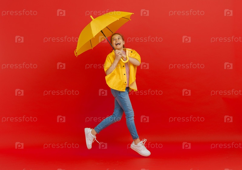 Ребенок с зонтиком на цветном фоне