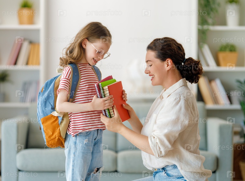 Счастливая семья готовится к школе