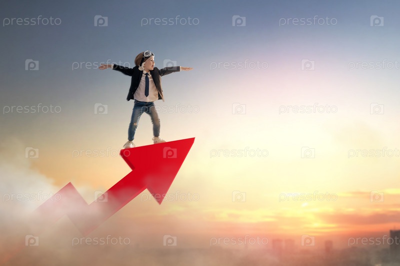 Бизнесмен ребенок на фоне заката