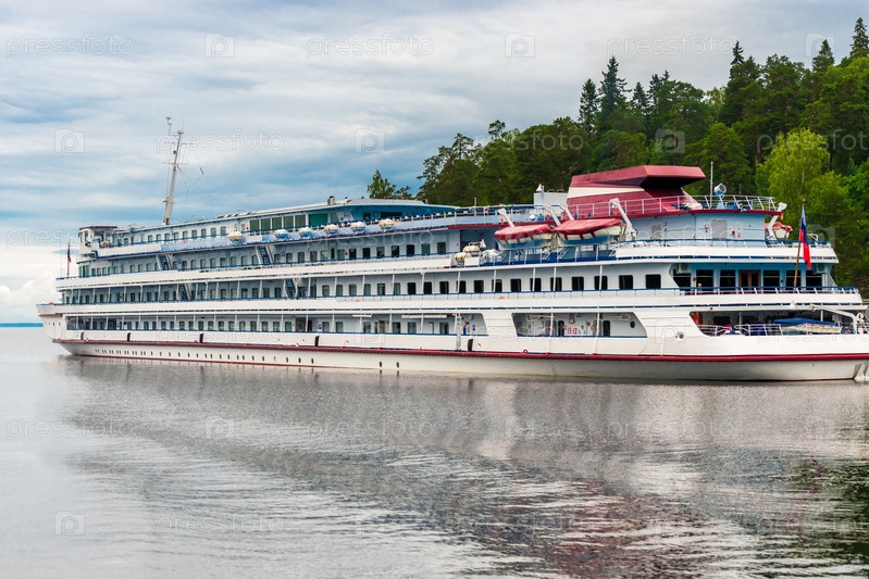 Скоростной пассажирский круизный теплоход у острова Валаам. Карелия, север России