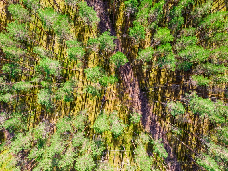 Еловый лес с высоты птичьего полета. Фото с дрона