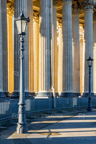 Исторические гранитные колонны собора, детали, полосы, фактурный фон