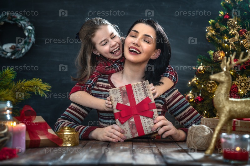 Семья празднует Рождество