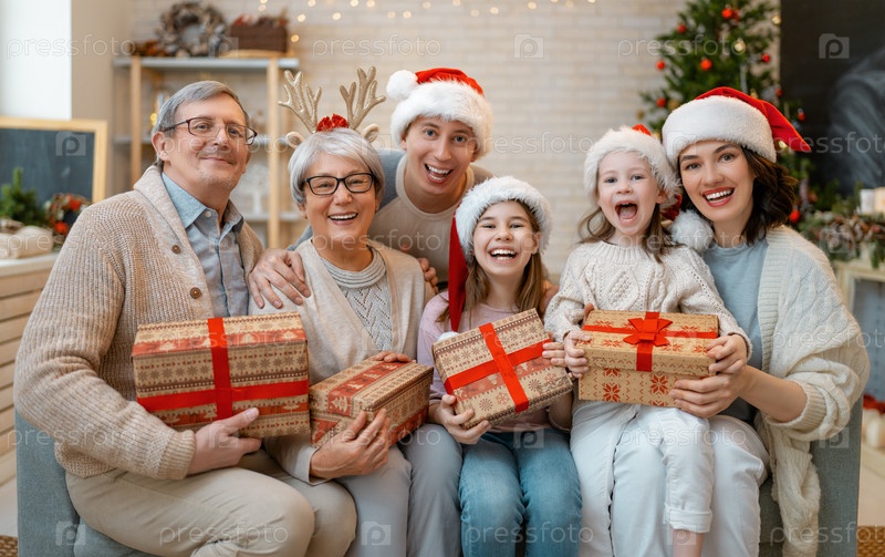 Семья празднует Рождество
