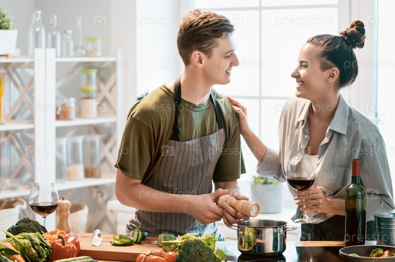 Влюбленная пара готовит правильную еду
