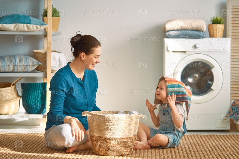 Семья занимается стиркой