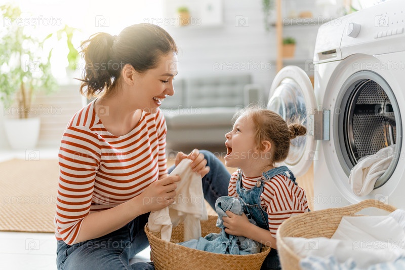 Семья занимается стиркой