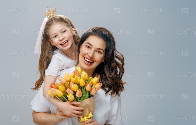 Дочь и мать с букетом цветов