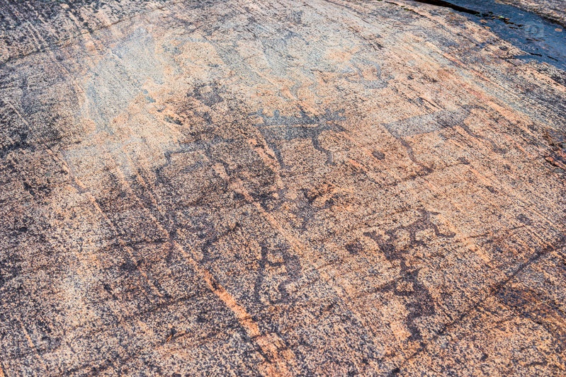 Древние наскальные рисунки (петроглифы) в Беломорском районе Карелии. Россия