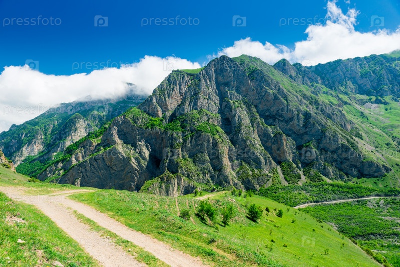 Прекрасный вид на зеленые горы Кармадонского ущелья Северного Кавказа. Россия