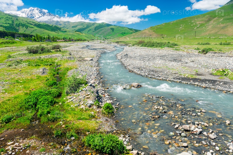 Живописная каменистая горная река в долине гор Северного Кавказа. Россия