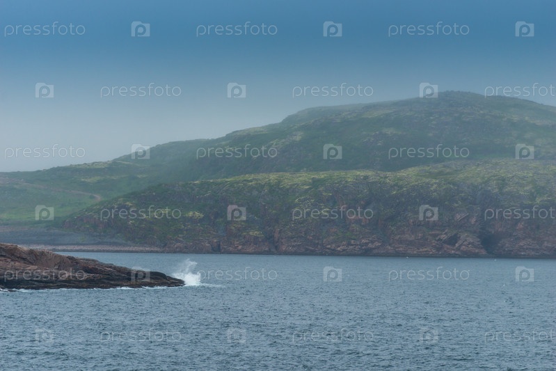 Летняя тундра. Скалистое побережье Баренцева моря около Териберки. Пейзаж русского севера. Кольский полуостров, Мурманская область, Россия