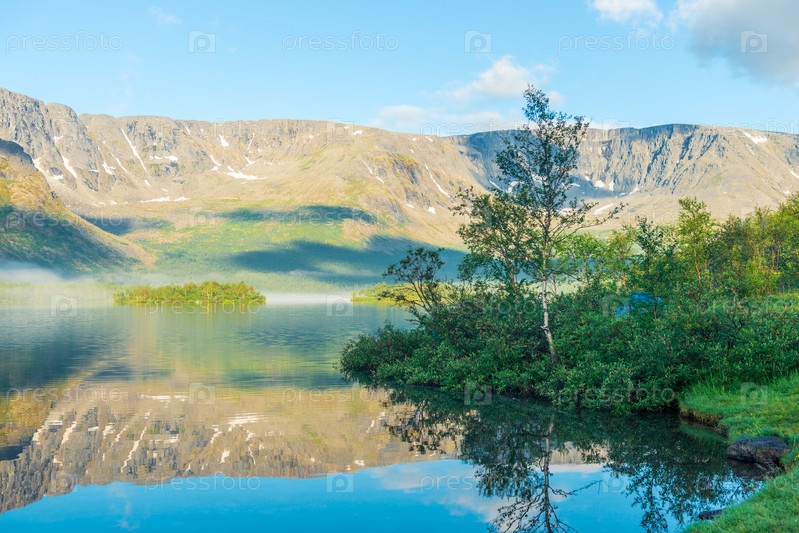 Панорамный вид на озеро в горах