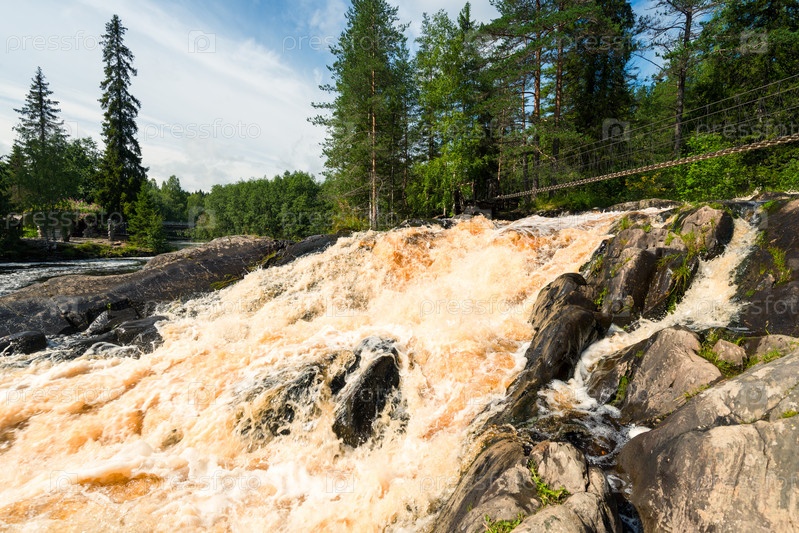 Подвесной мост через водопады Рускеала в Карелии, Россия