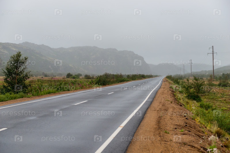 Асфальтовая дорога в полярной тундре. Крайний Север России