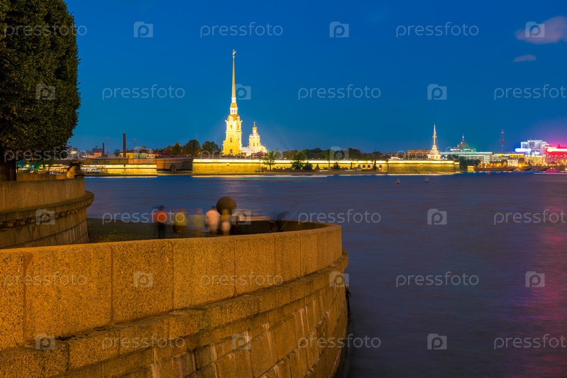 Вид на Петропавловскую крепость. Ночной Санкт-Петербург Россия
