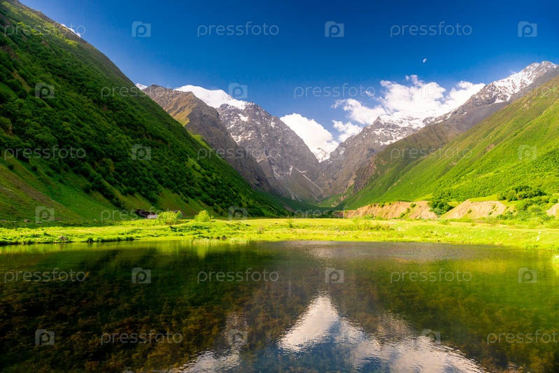 Живописное горное озеро в горной долине Северного Кавказа. Россия