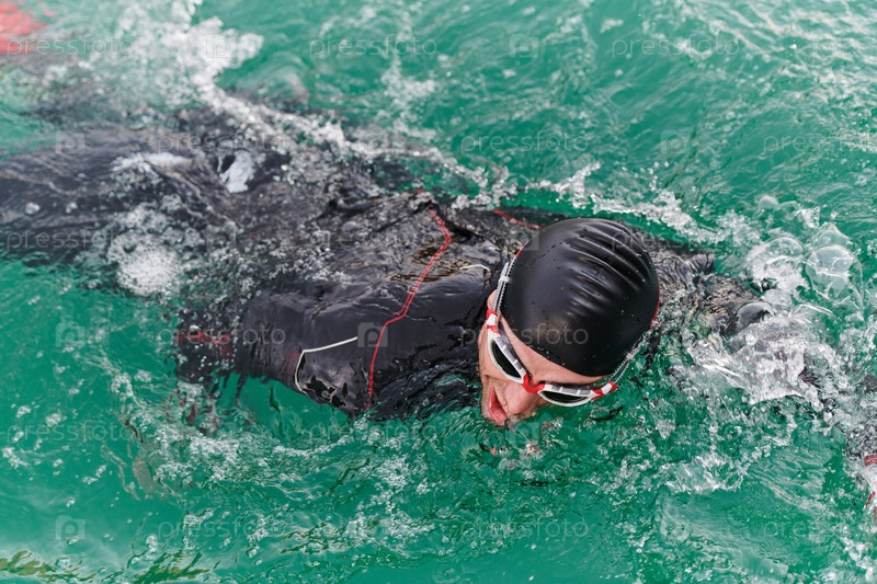 Профессиональный триатлонист с непоколебимой самоотдачей тренируется перед предстоящими соревнованиями на озере, излучая чувство атлетизма и глубокую приверженность совершенству