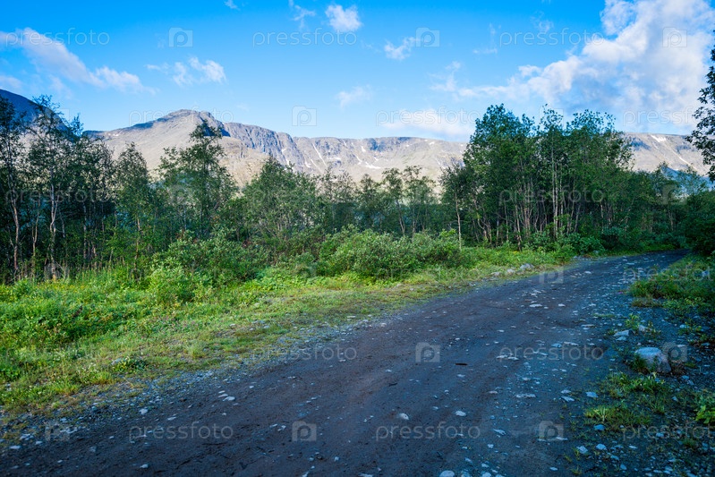 Грунтовая дорога в горном ландшафтном парке на фоне горы
