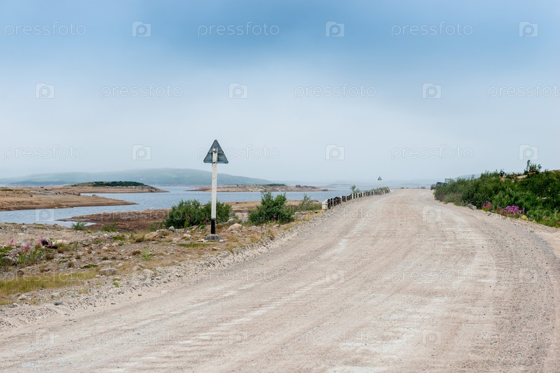 Грунтовая дорога в полярном ландшафте с гранитными камнями и растениями