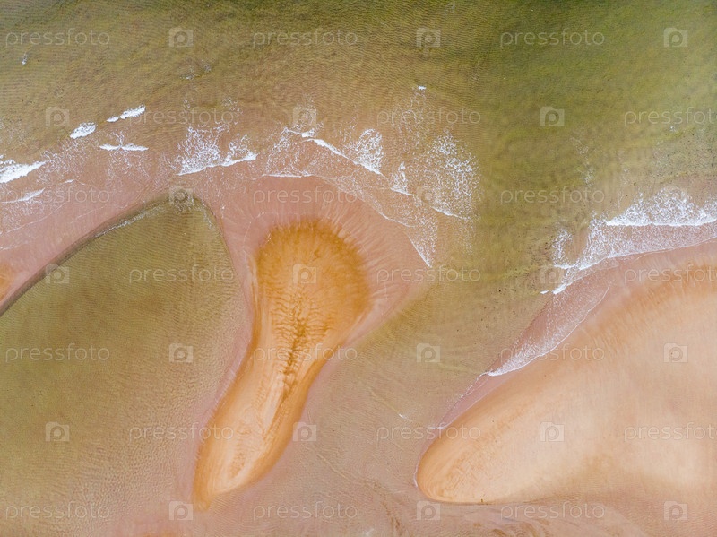 Линия прибоя на песчаном пляже Баренцева моря. Териберка