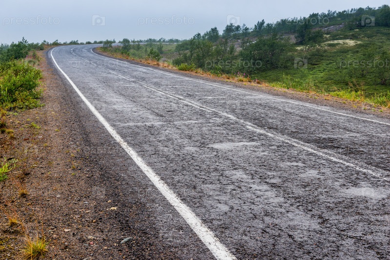 Асфальтовая дорога в полярной тундре. Крайний Север России